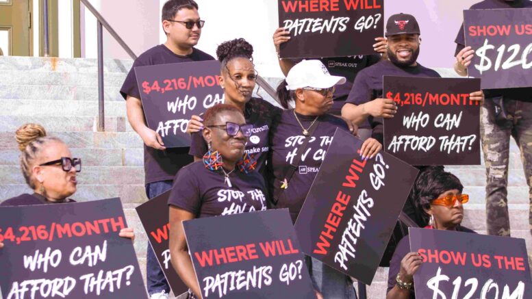 Organizers with the AIDS Healthcare Foundation (AHF) rallying on the steps of the Florida capitol. The Florida Department